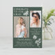 Modern Green White Butterfly Photo Graduation Party Invitations features the simple text "Congrats to the Grad" accented with a flower and butterflies with two of your favourite photos and personalised with name and graduation party details in elegant white script typography. Personalise by editing the text in the text boxes provided and adding your favourite photos. Designed by ©2023 Evco Studio www.zazzle.com/store/evcostudio