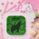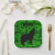 Modern Green Camo Black Wolf Silhouette Monogram | Paper Plate