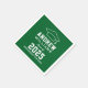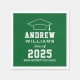 Modern graduation party napkins feature a grad cap with simple and modern white typography design that can be personalised with the graduate's name and school. Green background can be customised to match any school or party theme colour.