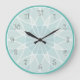 Decorative wall decor clocks designed in a light green pattern and fancy clock face numbers you can hang on the wall of your kitchen, bathroom, dining room, or bedroom.
