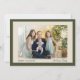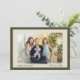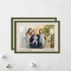 A timeless family photo holiday card featuring an elegant olive-green frame with a soft ivory mat and subtle sage accent. The front showcases your favourite horizontal photo with “Happy Holidays” and your family name in clean, readable type. The back includes space for a second photo and a short greeting (fully editable)—or swap the message for a longer note. Neutral and non-denominational, this classic two-sided design suits Christmas, Hanukkah, or New Year and prints beautifully on matte or shimmer stocks.