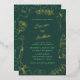 This elegant wedding invitation features a rich dark green background accented with vibrant bright green typography and luxurious real gold foil detailing. Delicate hand-drawn wedding icons—rings, cake, florals, candles, and envelopes—create a cohesive, modern yet romantic aesthetic. Perfect for fall, garden, or formal weddings, this design blends bold color contrast with timeless elegance. Fully customizable with your names, date, venue, and wording, this invitation coordinates beautifully with matching RSVP cards, details cards, signage, and décor for a polished wedding stationery suite.