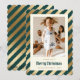 Modern Green Gold Photo Elegant Merry Christmas Holiday Card