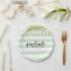 Modern Green & Gold Stripe Graduation Party Plates