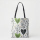 This modern floral tote features hand-drawn botanicals and bold green heart blooms in a clean Scandinavian-inspired style. Perfect for everyday errands, markets, and cozy indie vibes.