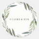 Modern Green Leaf Wreath Wedding Sticker