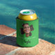 Modern Green Lucky Shamrock Four Leaf Clover Photo Can Cooler