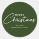 Modern Green Merry Christmas Script Custom Classic Round Sticker