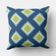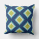 Modern Green Navy Blue Diamond Ikat Pattern Cushion