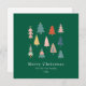 Green elegant non-photo holiday card .This chic and simple holiday card features a modern set of Christmas trees. The stylish text can be completely personalised with your choice of greeting, family name, year, and a custom message.