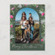 Modern Green Pink Botanical Arch Merry Christmas Postcard