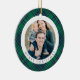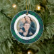 Modern Green Plaid Photo Christmas Ceramic Ornament.