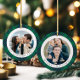Modern Green Plaid Photo Christmas Ceramic Tree Decoration