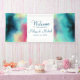 A wedding banner with a cool and stylish abstract design. Watercolors mix and mingle to create the illusion of a space image. Green with swirls of purple, yellow and light red blend together with a smattering of white dots and stars. A cool trippy creation.