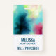 Name badge with a cool and stylish abstract design. Watercolors mix and mingle to create the illusion of a space image. Green with swirls of purple, yellow and light red blend together with a smattering of white dots and stars. A cool trippy creation.
