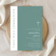 Modern Green Religious Cross Boy First Communion Invitation