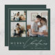 Modern Green Simple Script Photo Collage Christmas Holiday Card