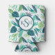 Monogrammed cute green tropical botanical leaf's seamless pattern over custom white background.