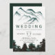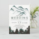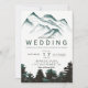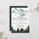 Modern green watercolor forest mountains wedding invitation