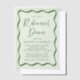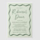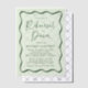 Set the stage for a memorable pre-wedding gathering with this Modern Green Wavy Frame rehearsal dinner invitation. The words "Rehearsal Dinner" are elegantly displayed in a rich green script on a light green sheer vellum background, creating a stylish and contemporary look. A bold green wavy border frames your event details, adding a unique and sophisticated touch. Perfect for both casual and formal celebrations, this invitation ensures your guests receive all the important details in a beautifully designed format.