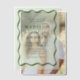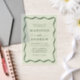 Introducing our Modern Green Wavy Frame vellum wedding invitation, where boho charm meets retro elegance in a perfect blend of style and sophistication. Featuring green lettering that gracefully dances across a light green sheer vellum background, this whimsical design is framed with a vintage-inspired wavy border. Perfect for couples seeking a modern yet nostalgic look, this customisable invitation allows you to personalise your names and wedding details, creating a unique and memorable announcement for your special day. Set the tone for your celebration with this enchanting vellum wedding invitation, designed to capture the essence of love and timeless beauty.