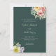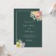 Introducing our stunning modern wedding invitation with beautiful pastel flowers. This invitation features a deep and sophisticated shade of dark green, creating a luxurious look and feel. The pastel coloured flowers in the top right and bottom left corners add a pop of colour and elegance to the design.