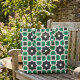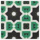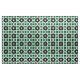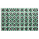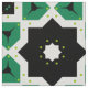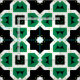 Seamless decorative geometric pattern featuring geometric shapes in green, black and white.