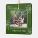 Modern Green White Frame Family Photo Christmas Ceramic Ornament