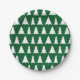 Modern Green White Tree Pattern Holiday Party Paper Plate