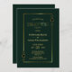 Invite your friends and loved ones to your engagement party with this modern gold-framed green engagement party invitation.