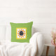 Brighten up your indoor or outdoor living spaces with this modern sunflower pillow in sunny shades of green, yellow, and orange. This decorative cushion featuring a contemporary sunflower design with playful polka dots will add a touch of nature-inspired style to your home decor. This design is bold and bright, and it will complement modern and botanical interior design styles. Use this pillow as an accent in a living room, bedroom, porch, or patio.