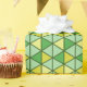 Wrap your gift in this paper that is covered in this pattern of warm green and yellow triangles running in a slight angle.