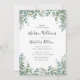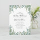 Elegant, modern wedding invitation featuring your wedding details with a top and bottom border of green watercolor leaves and foliage. The reverse side features a solid green background. Designed to coordinate with our Modern Greenery wedding collection.