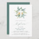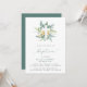 A fresh modern baptism invitation featuring a white cross on watercolor leaves and script font in sage green.