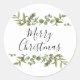 Modern Greenery Elegant Script Merry Christmas Classic Round Sticker