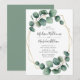 Elegant, modern wedding invitation featuring your wedding details surrounded by a faux gold foil geometric frame with watercolor leaves adorning the corners. The reverse side features a solid green background. Designed to coordinate with our Modern Greenery wedding collection.