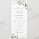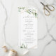 Rustic watercolor botanical foliage greenery design with faux gold foil leaves and geometric frame, with trendy script, simple and elegant, great wedding program for green and gold summer rustic wedding, spring botanical garden wedding.