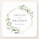 Modern Greenery Gold Geometric Rustic Wedding Square Paper Coaster