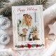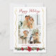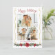 Modern Greenery Gold Happy Holidays 3 Photo Holiday Card