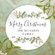 Modern Greenery Merry Christmas Family Name Classic Round Sticker