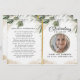 Customise this modern, elegant funeral program with your own photo and text to create a special tribute to your Beloved. An 'In Loving Memory' program featuring Floral Foliage botanical and gold accent memorial program. On the front cover is a photo of your loved one, their name, dates, the memorial venue, and the date of the event. On the inside is an obituary and order of service, and on the back is a thank you note and the venue of the