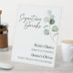 This modern greenery white wedding signature drinks pedestal sign design features easy mix and match coordinating styles in black and white with delicate greenery elements adding graceful flourish around simple sophisticated typography and lovely minimal calligraphy script. The watercolor eucalyptus and other botanical leaves arch beautifully throughout, with dark emerald fading in an ombre effect to light mint green - to add just enough of a classy touch of rustic nature to a neutral contemporary backdrop. This gorgeous collection would perfectly create an air of polished elegance for your formal or casual dream wedding or other special event. As with all of our designs, if you have any questions or special requests, please reach out.