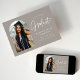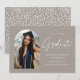 Trendy graduation announcement featuring the graduate's photo framed by a greige arch with "Graduate" in a white handwritten script. Personalise the front of the arch graduation announcement card by adding the graduate's name, graduation year, school name, and future plans. The photo graduation announcement reverses to display a grey/beige and white dotted pattern. The announcement is suitable for both high school and college graduates.