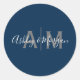 Modern Grey and Blue Couple's Monogram Classic Round Sticker