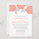 Whimsical coral roses with rustic grey leaves decorate this modern wedding invitation.