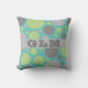 Modern pattern features large and small bubbles of kiwi green and shades of grey on aqua / turquoise background. Personalise with name or monogram in grey collegiate style font