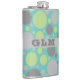 Modern Grey and Green Bubbles Monogram Hip Flask