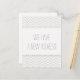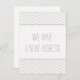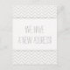This simple, elegant change of address postcard features a trendy soft grey chevron background. The front says "We have a new address" in a white dotted frame, but you can change the wording using the template. Easily personalise the back of these chevron change of address card templates with your new information to make sure everyone knows you have moved.