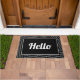 Modern Grey & Black Stripe & Triangle Hello Script Doormat