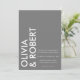 A simple modern wedding invitation featuring bold typography names, grey colour and minimalist design.